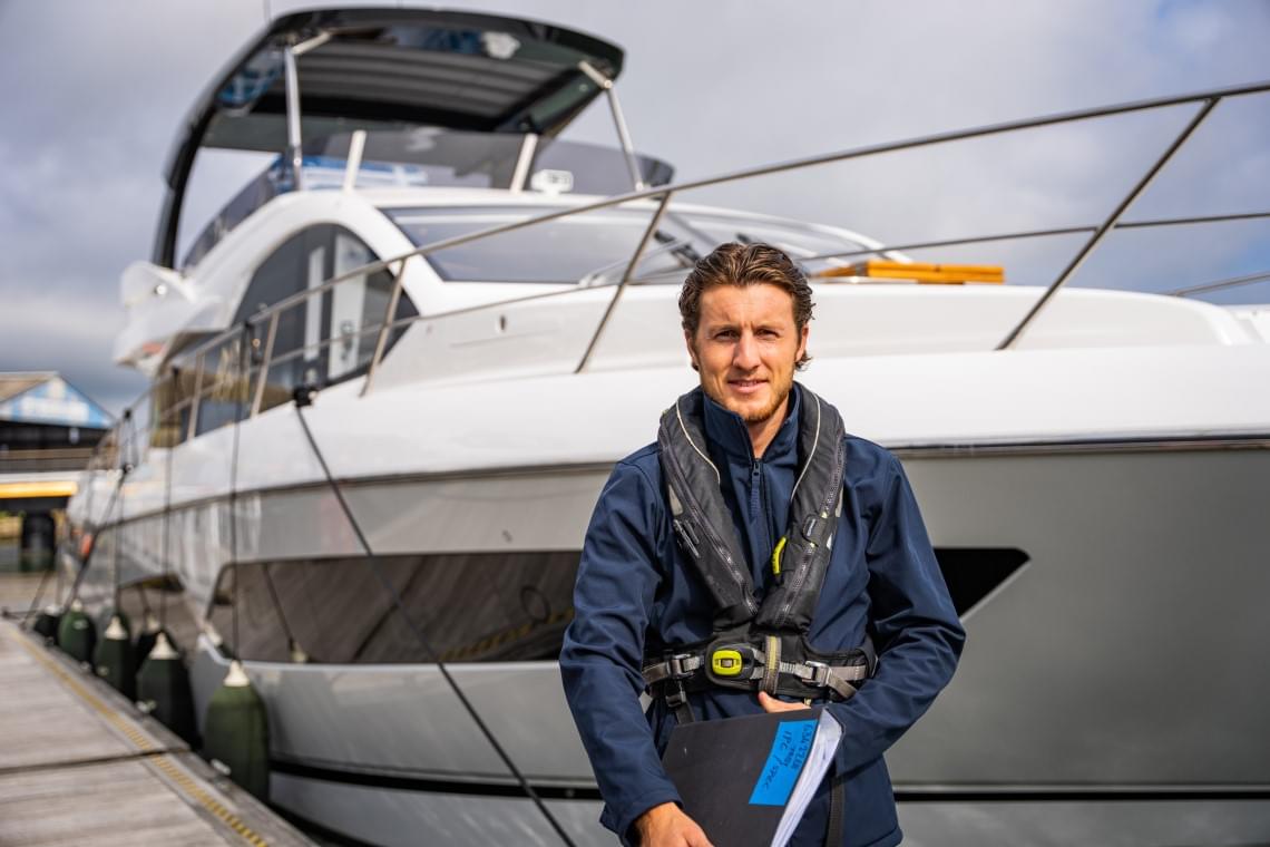 The Test Team put the boats through their paces in all areas of the build, ensuring every Sunseeker is safe, reliable and ready for the client to enjoy wherever they are in the world. As an Electrical Test Engineer, I check that all electrics on-board are functional, safe and operating at optimum capability. My job is to test the entire boat from bow to stern from lights and sockets to air conditioning, generators, engines, steering systems etc. As an electrical tester here on the team not all my work is electrical, I also test plumbing, engineering and deck fit whilst working with the Production teams to make sure everything on board is working, meets the specification and is safe and practical to meet the high standard of a Sunseeker right before it departs Poole Shipyard.