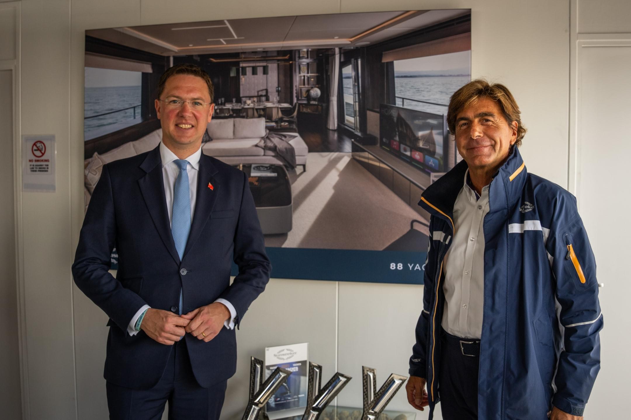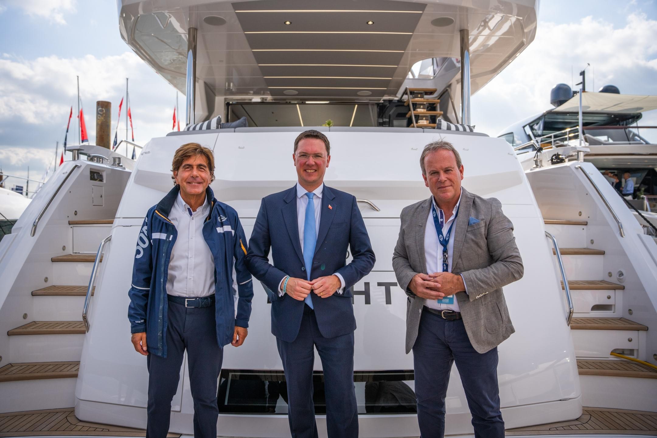 Minister for Transport, Robert Courts MP visited Sunseeker at the Southampton International Boat Show, meeting with Andrea Frabetti, CEO and Sean Robertson, Sales & Marketing Director to learn more about the company and the incredible models on display.